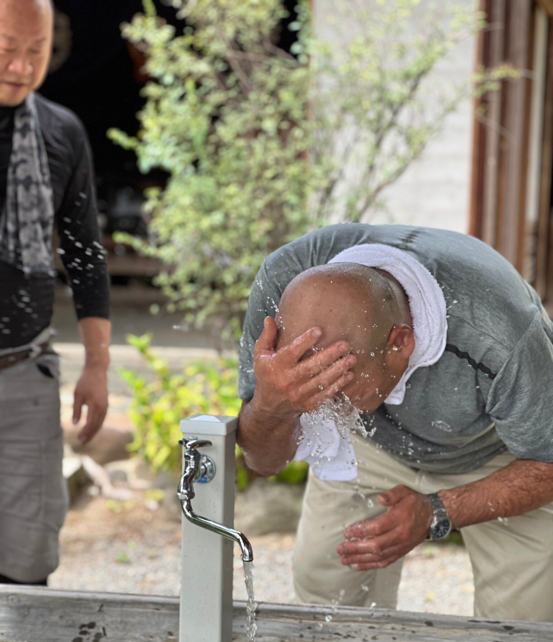 サムネイル画像は、暑すぎて水で涼をとる親方です🤣🤣 躍動感ある流水が涼しそうなワンショットですね📷