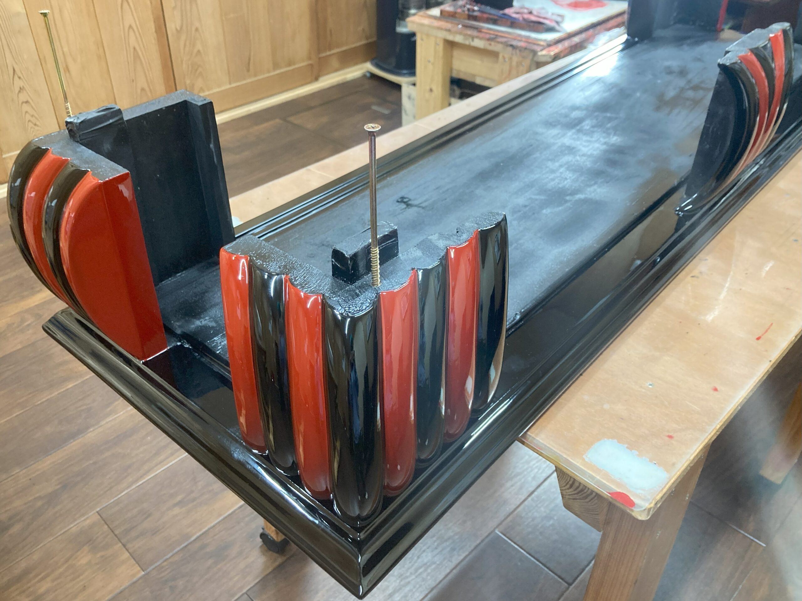 サムネイル画像と記事タイトルでバレてしまっていますが、朱色を塗っているところのお写真を撮らせてもらいました✧p📷qω•,,´)