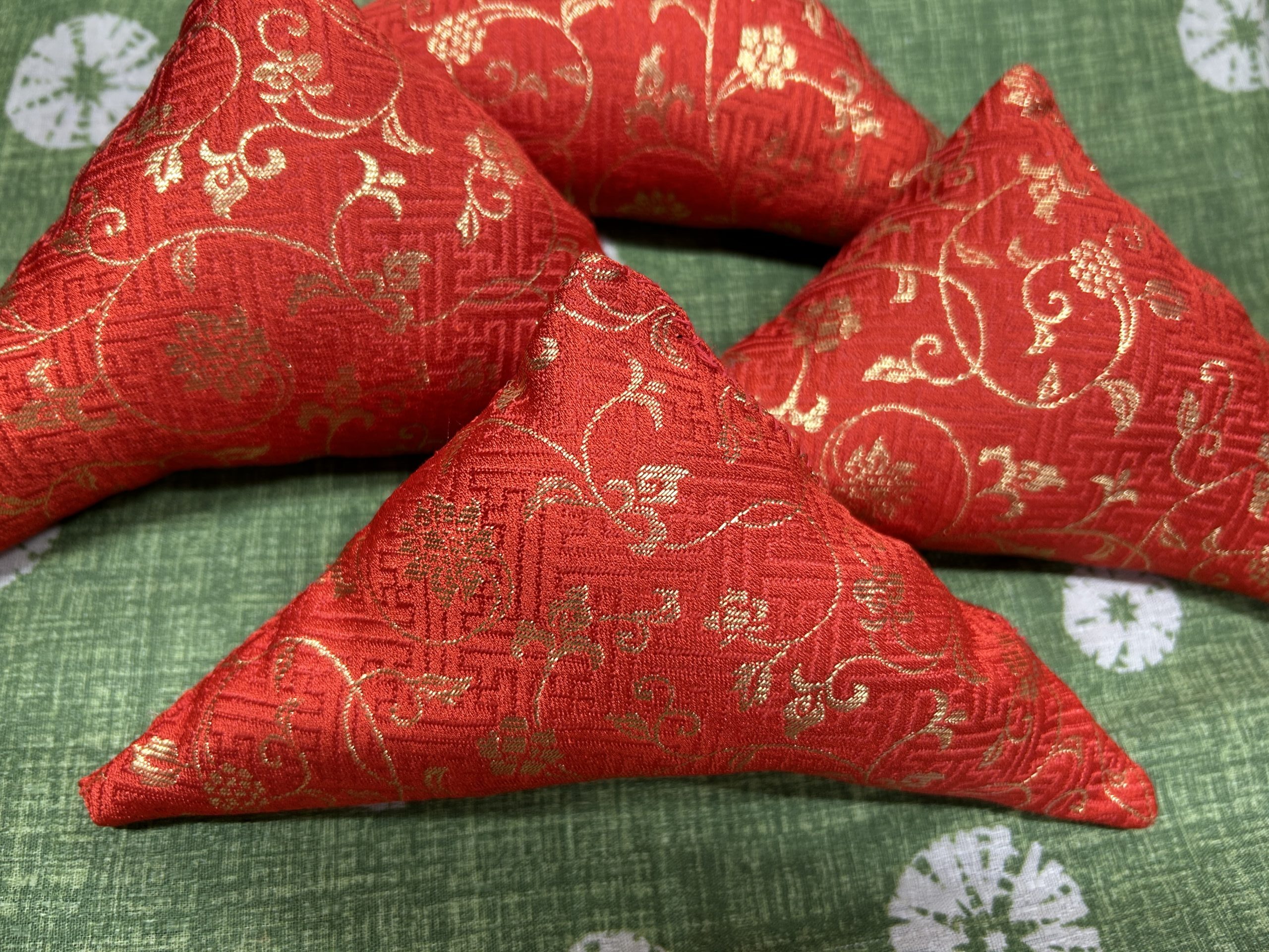 この額受けは金属製なので、木製の額を傷つけてしまう可能性もあります。そこで、額布団というクッションを額と額受け金具の間に挟んで、傷から守ります! 額布団は華やかなので、装飾の意味も兼ねているようです。